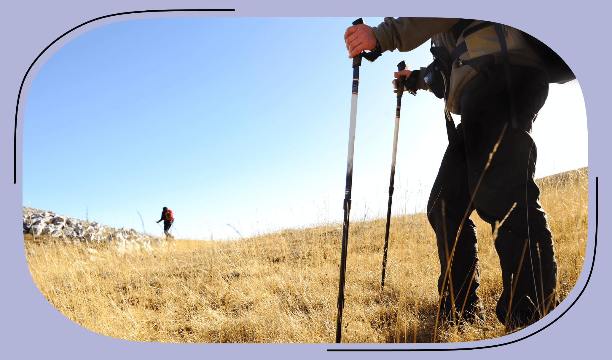 Nordic walking is for everyone, even if you're recovering from an injury! In fact, Nordic walking is one of the best ways to keep yourself active and moving during a physical recovery process, as the poles relieve stress from your joints.3Homma D, Jigami H, Sato N. April 28, 2016. Homma D, Jigami H, Sato N. Effects of Nordic walking on pelvis motion and muscle activities around the hip joints of adults with hip osteoarthritis. J Phys Ther Sci. DOI:10.1589/jpts.28.1213